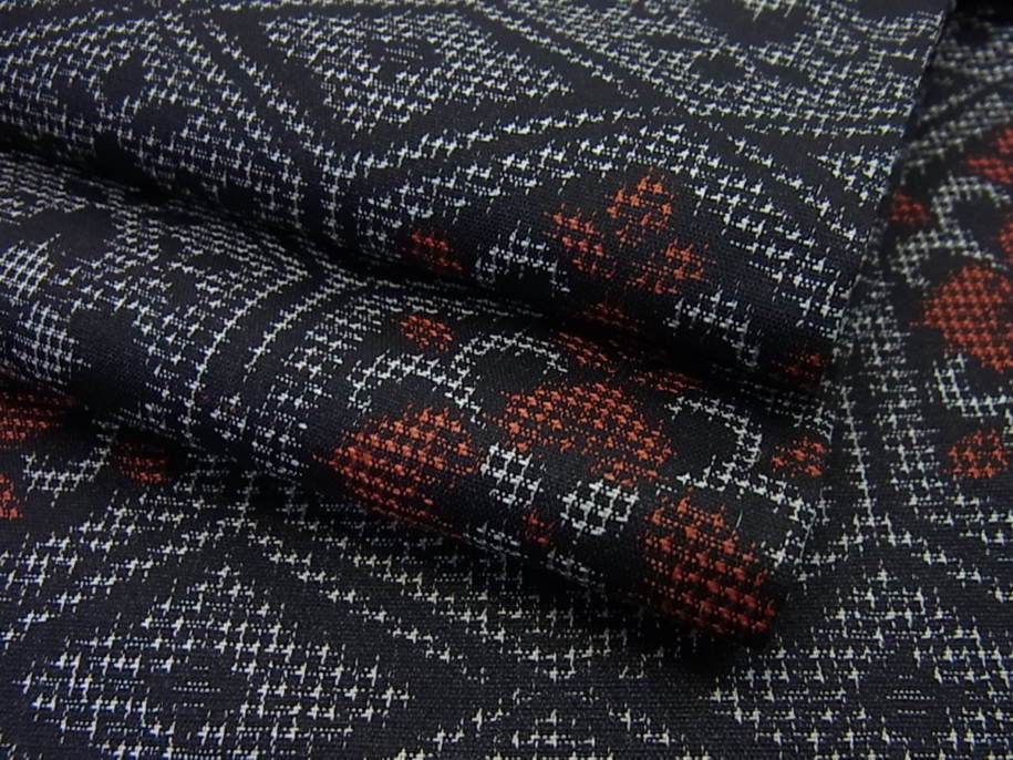 今回お買取させていただいたお品物は、本場大島紬・アンサンブル・花唐草亀甲文の着物になります。