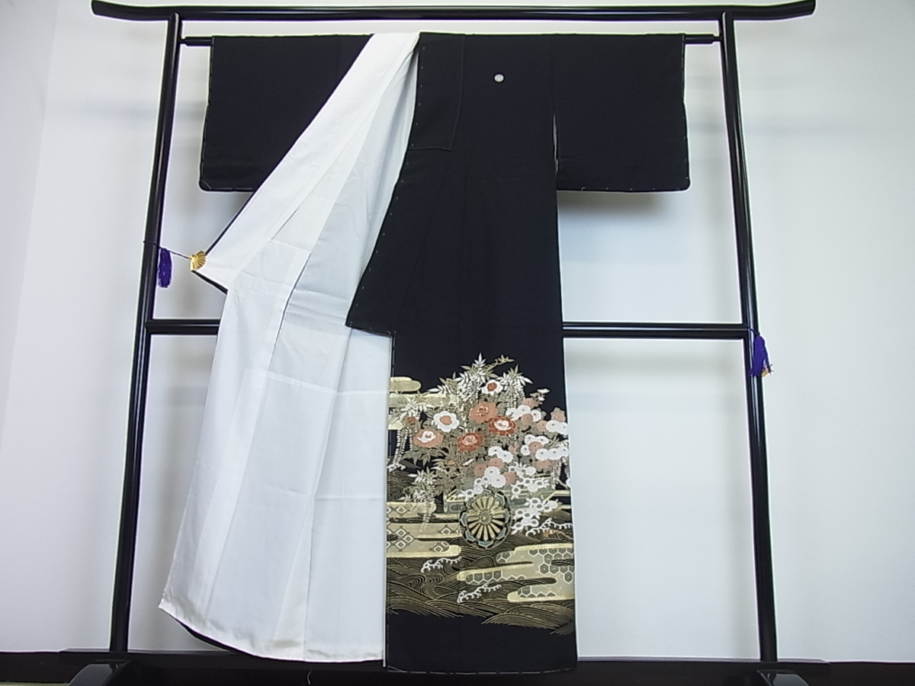 【着物】豪華黒留袖 駒刺繍 吉祥立波花車文