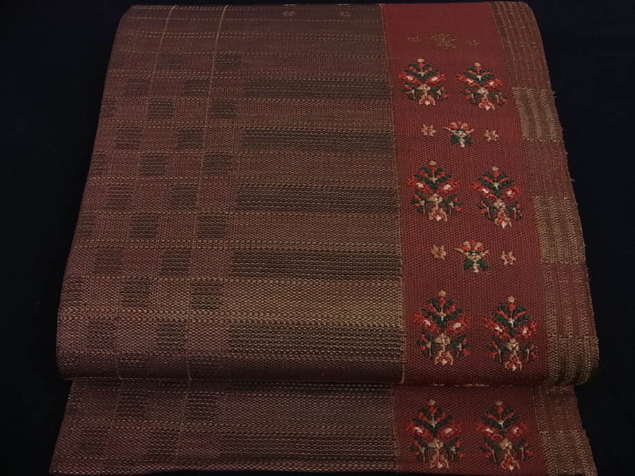 【帯】六通柄袋帯 市松吉祥花文 金糸