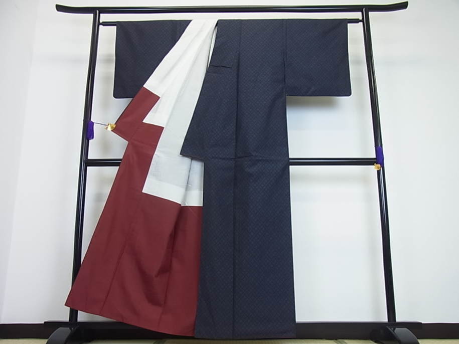 【着物】本場大島紬 アンサンブル 花唐草亀甲文