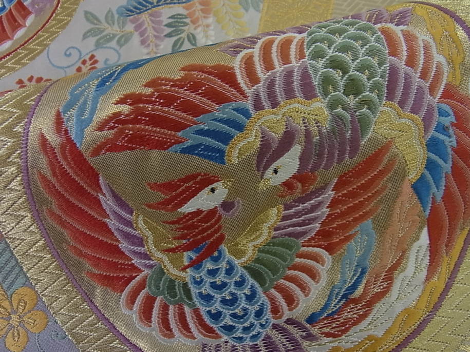 今回お買取させていただいたお品物は、六通柄袋帯・唐織・狂言の丸の帯になります。
