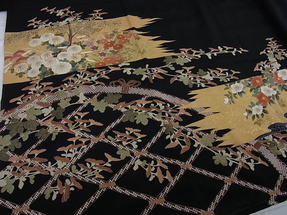 今回お買取させていただいたお品物は、豪華黒留袖・駒刺繍・籬吉祥花文の着物になります。