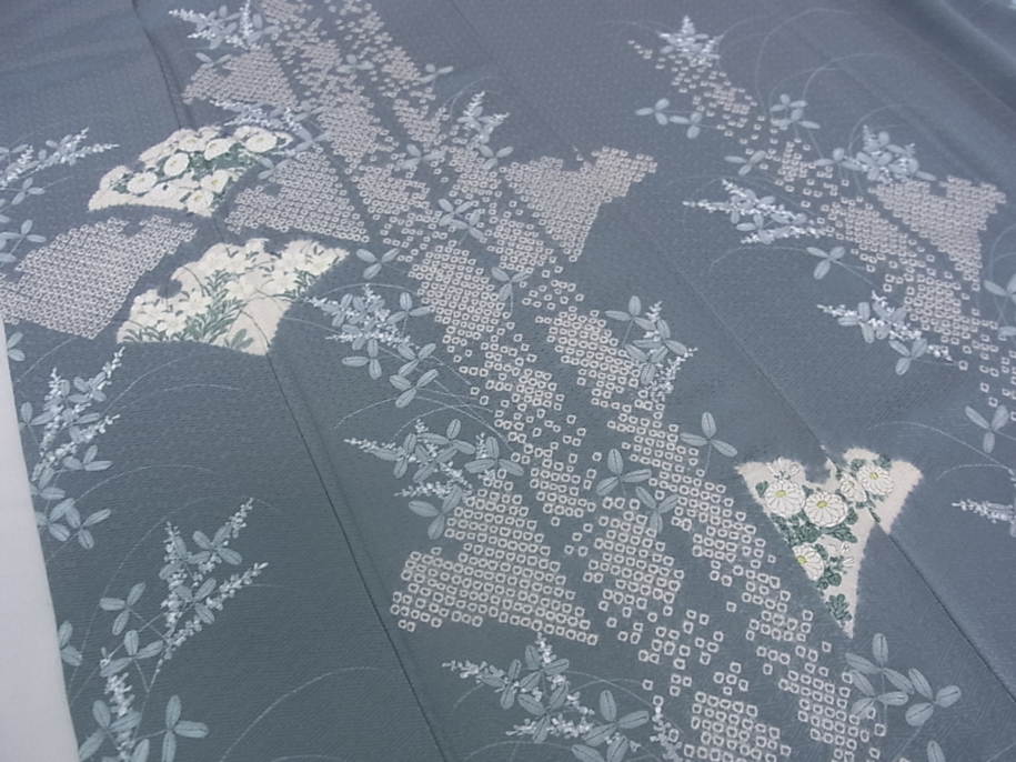 今回お買取させていただいたお品物は、訪問着・絞り・草花文の着物になります。