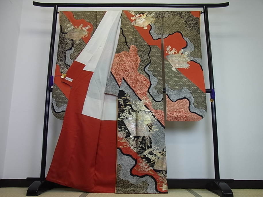 【着物】本場大島紬 アンサンブル 花唐草亀甲文
