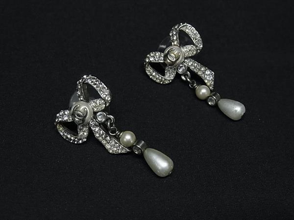 CHANEL シャネル ココマーク C20 A ラインストーン リボン フェイクパール ピアス アクセサリー シルバー 高価買取実績