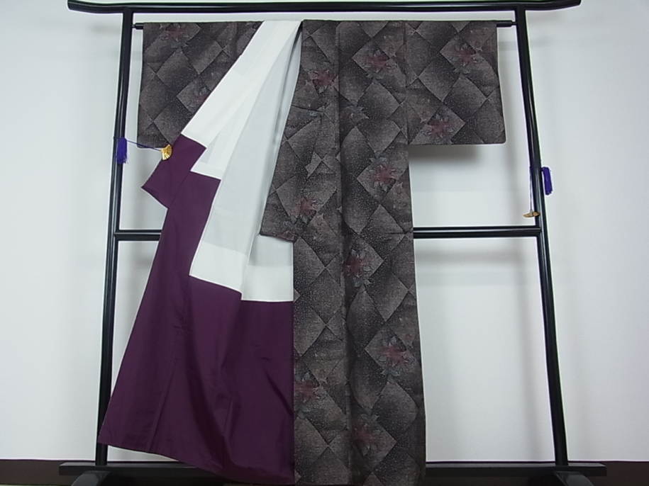 【着物】本場大島紬 泥染 舞花吉祥菱文