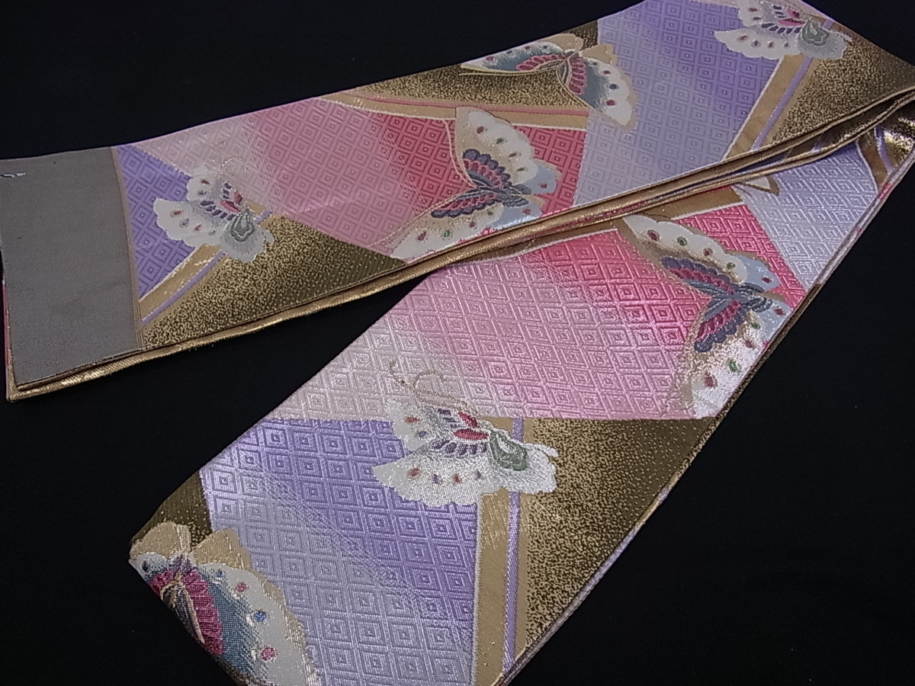 【帯】半幅帯 佐賀錦 吉祥舞蝶文
