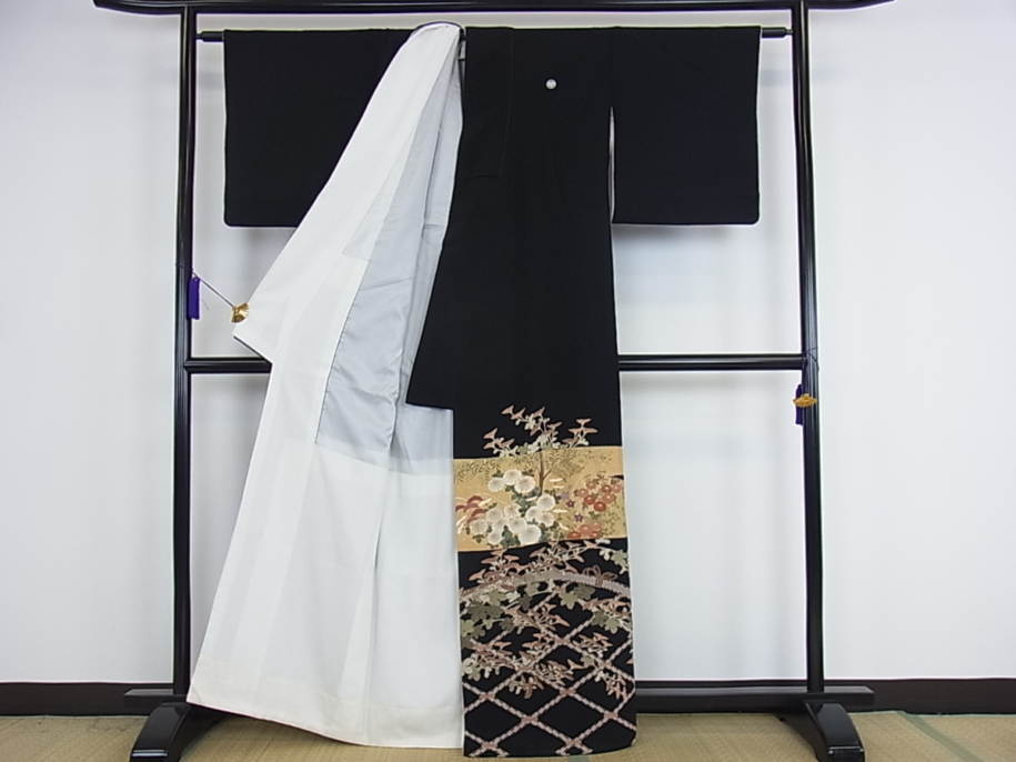 【着物】豪華黒留袖 駒刺繍 籬吉祥花文